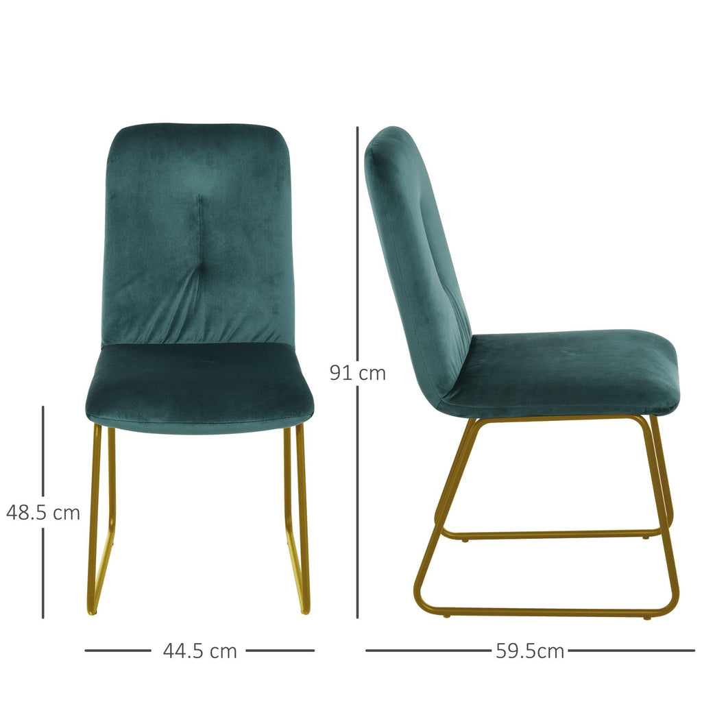Set 2 Sedie Imbottite 44,5x59,5x91 cm in Flanella Verdi