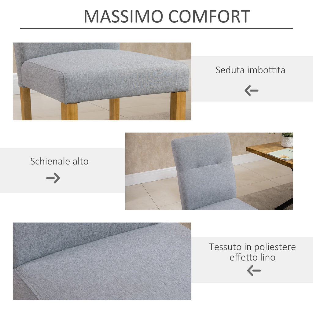 Set 2 Sedie Imbottite 50x62x96 cm in Tessuto Effetto Lino Grigio Chiaro