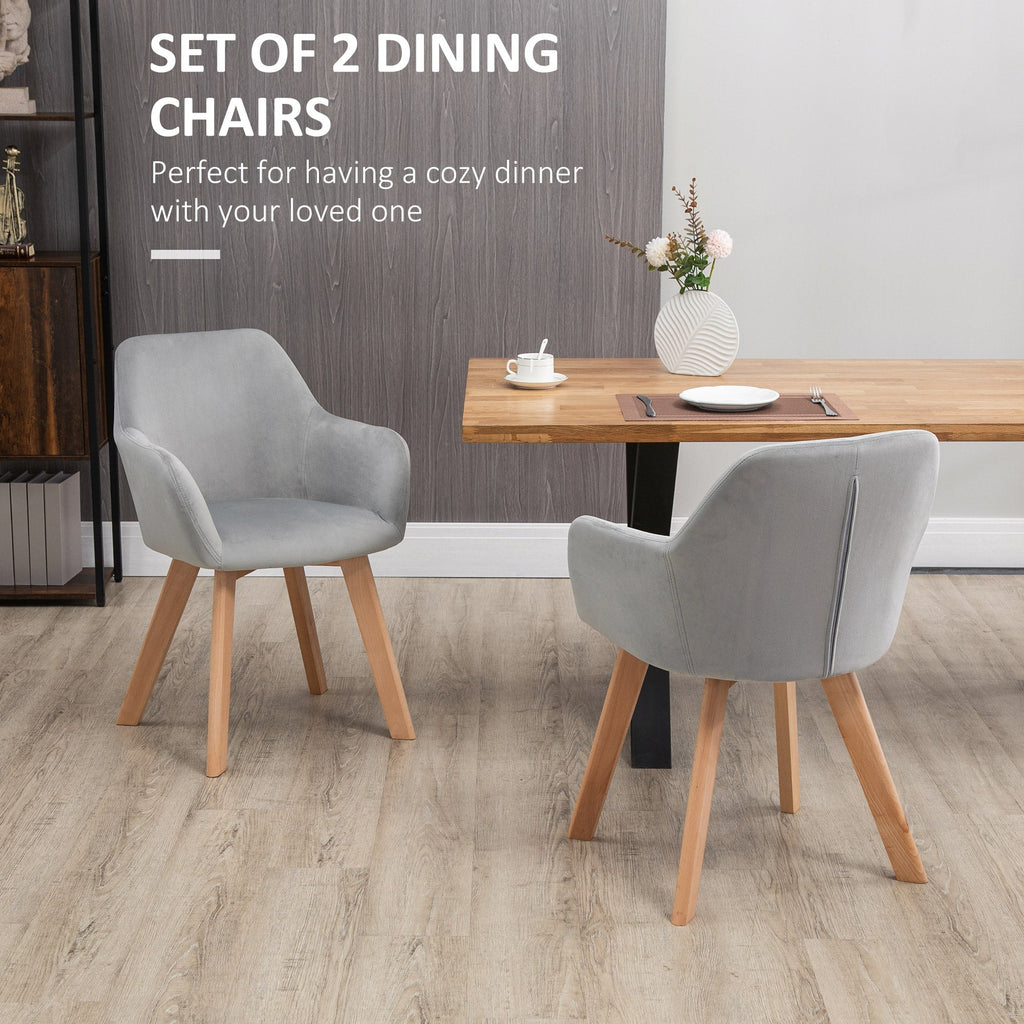 Set 2 Sedie Imbottite 54x57x80 cm in Velluto e Legno Grigio