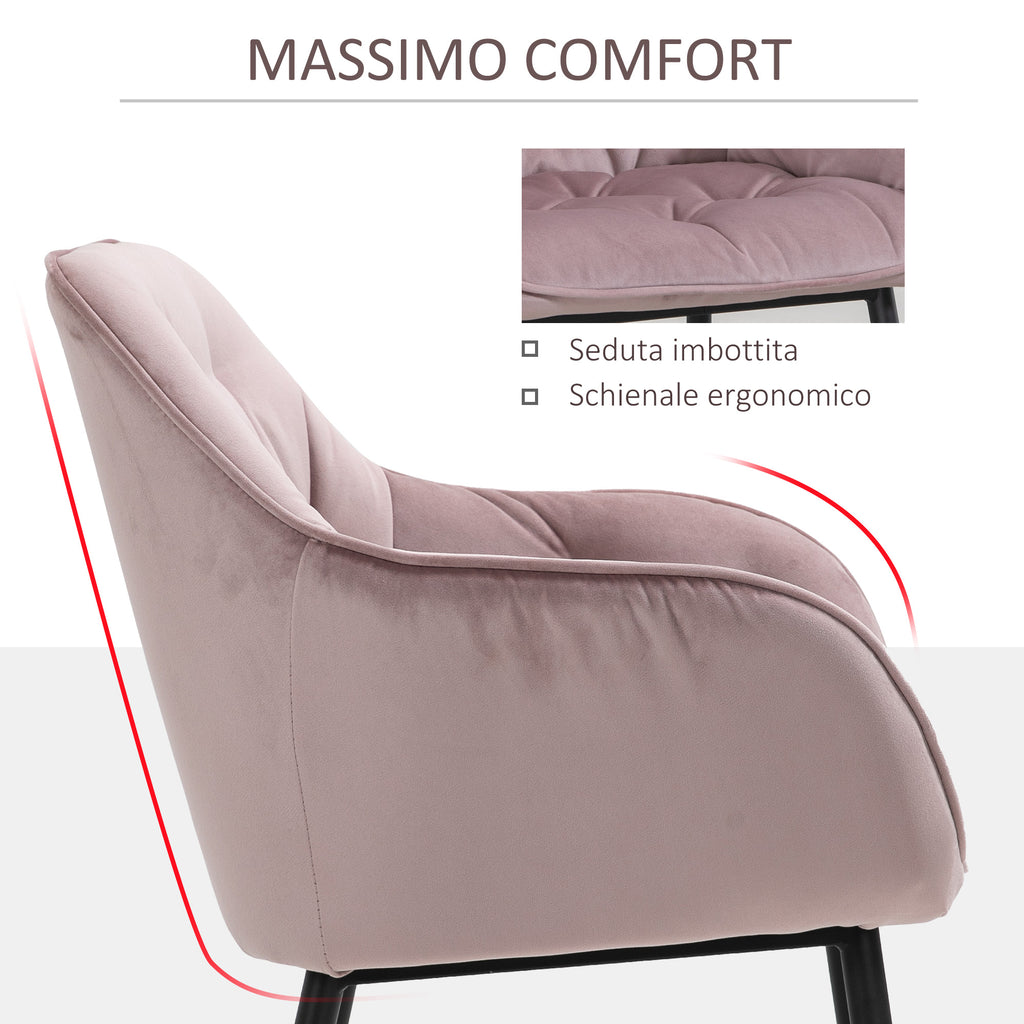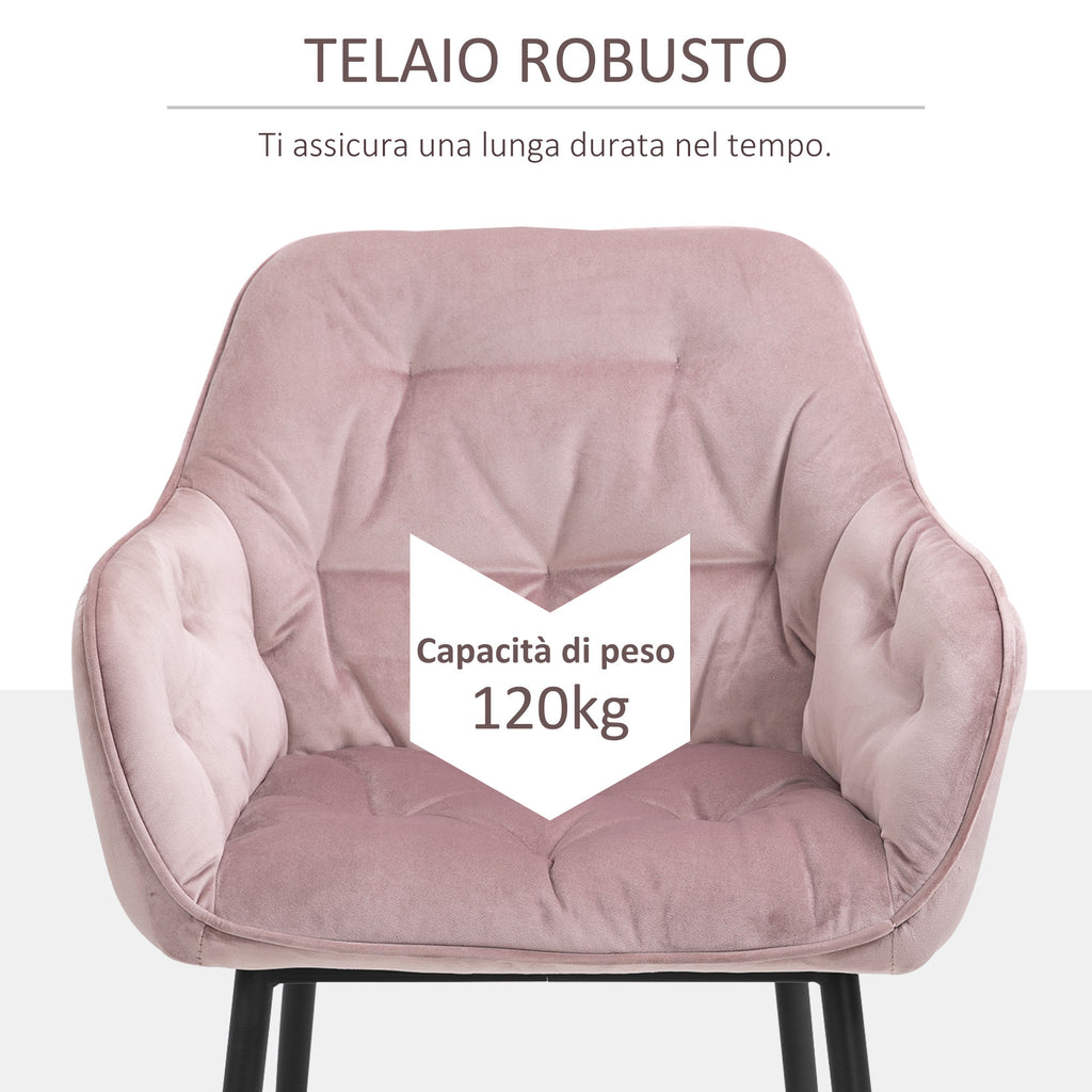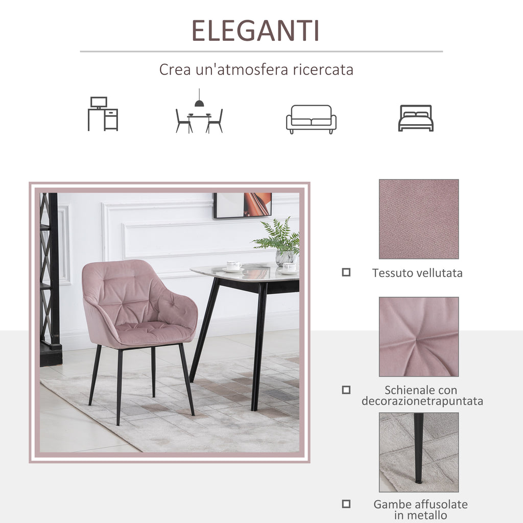 Set 2 Sedie Imbottite 59,5x55,5x83,5 cm in Velluto Rosa