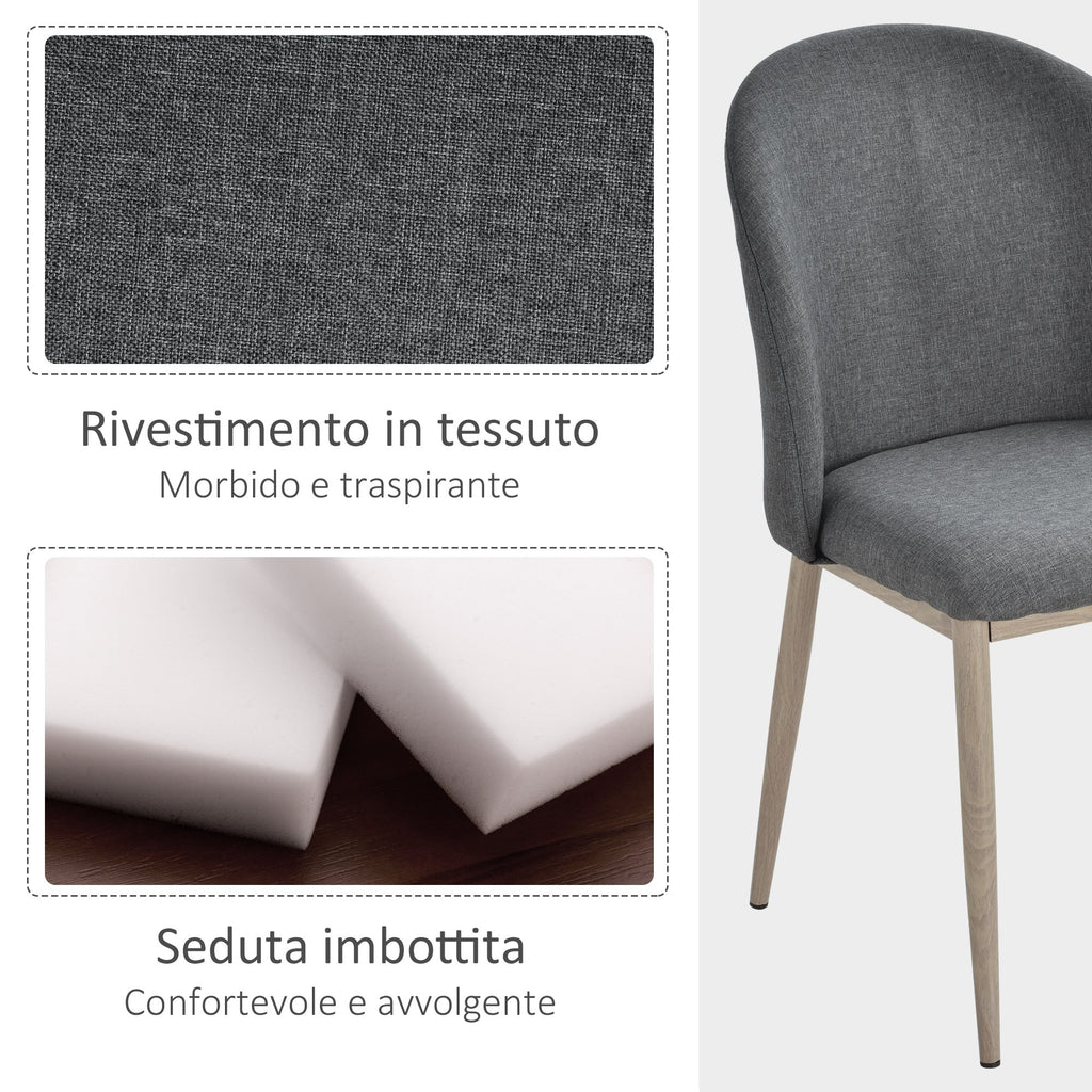 Set 2 Sedie imbottite in Acciaio e Poliestere 50x58x85 cm Grigie