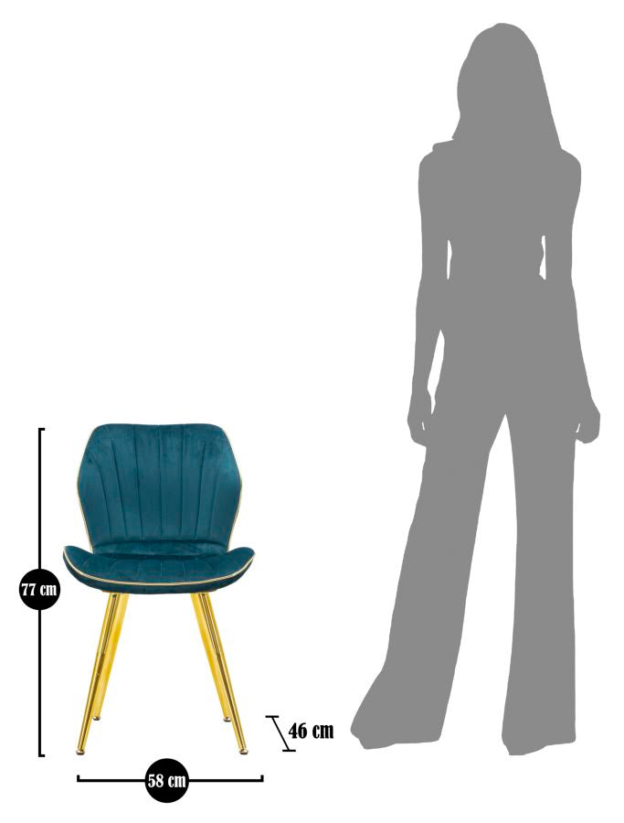 - Le sedie sono rivestite in velluto sintetico color ottanio, garantendo comfort eccezionale