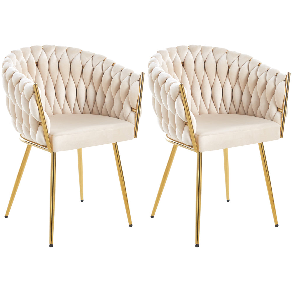 1 x Set 2 Sedie per Sala da Pranzo e Ufficio in Velluto Beige SediaErgonomica