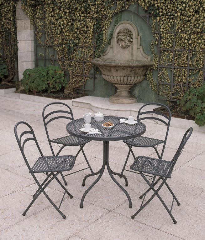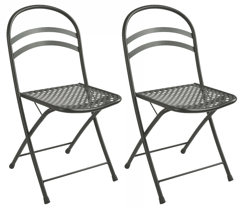Set di 2 sedie pieghevoli con struttura in acciaio e verniciatura poliestere color antracite.