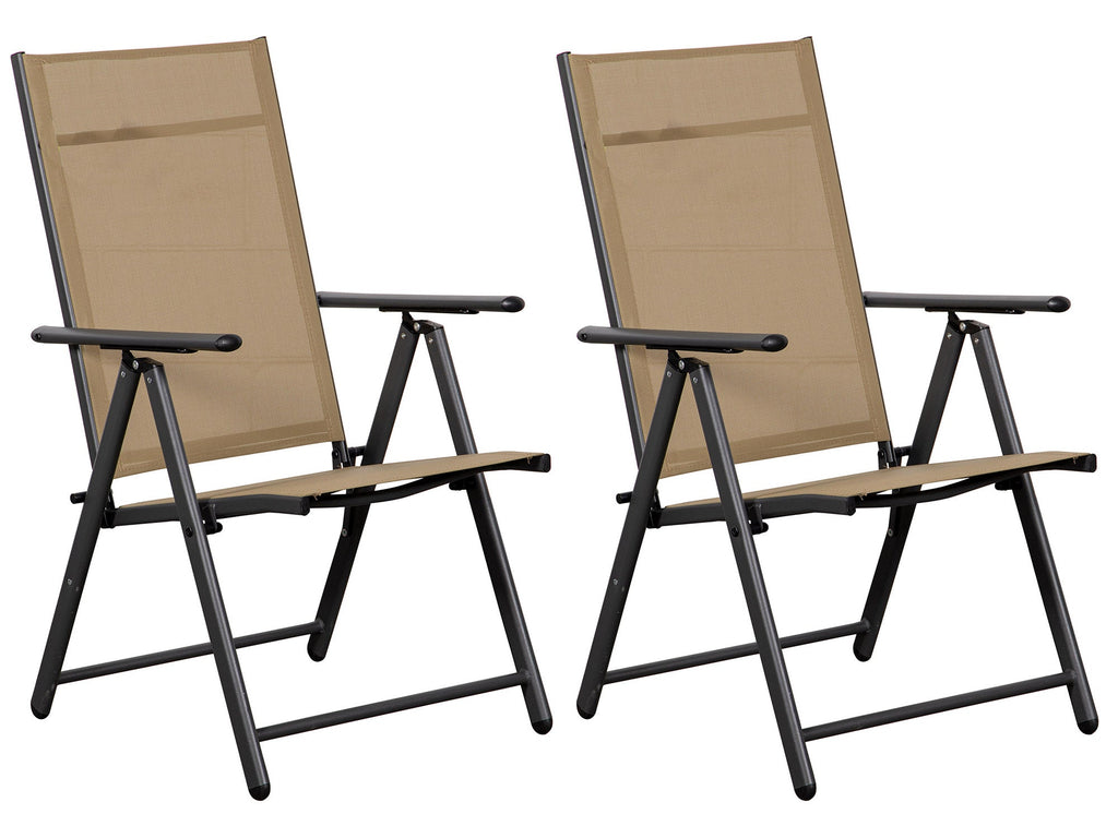Set 2 Sedie Pieghevoli da Giardino 57x67x107 cm in Metallo e Textilene Taupe