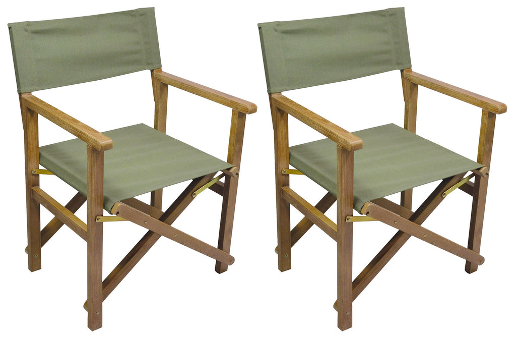Set 2 Sedie Regista da Giardino 56x52x82 cm in Robinia e Canvas Salvia