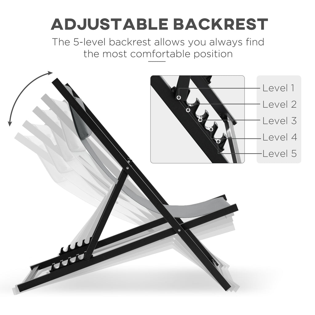 - Set composto da 2 sedie a sdraio grigie, per portare un tocco di eleganza nel tuo terrazzo o nel tuo giardino
