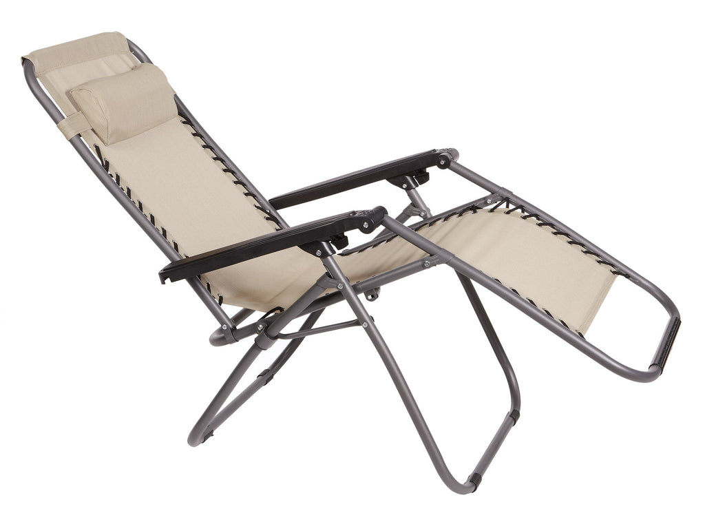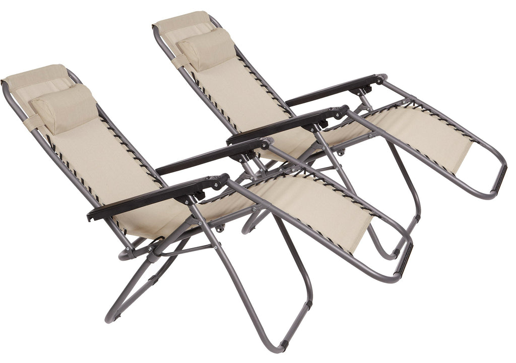 Set 2 Sedie Sdraio Zero Gravity Reclinabile Pieghevole 90x66x108 cm in Metallo e Textilene Beige