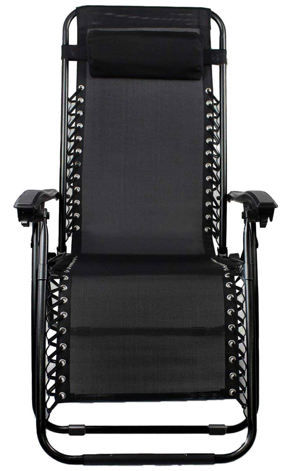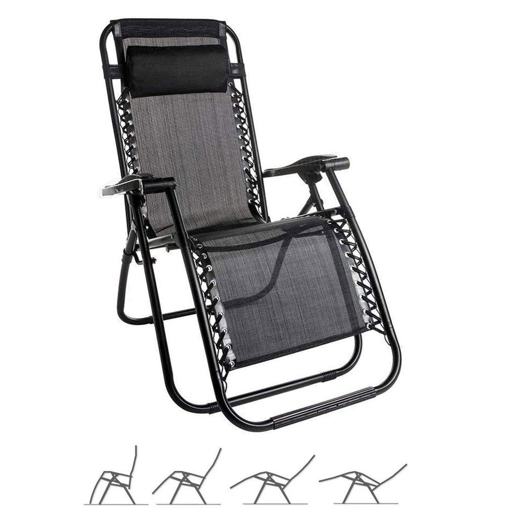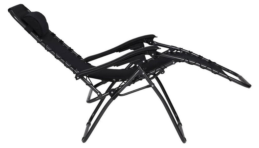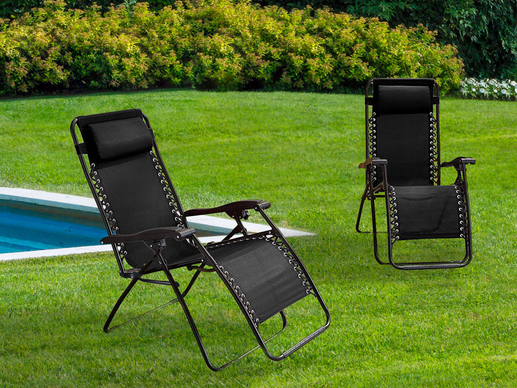 Set 2 Sedie Sdraio Zero Gravity Reclinabili Pieghevoli in Ferro e Textilene Nere