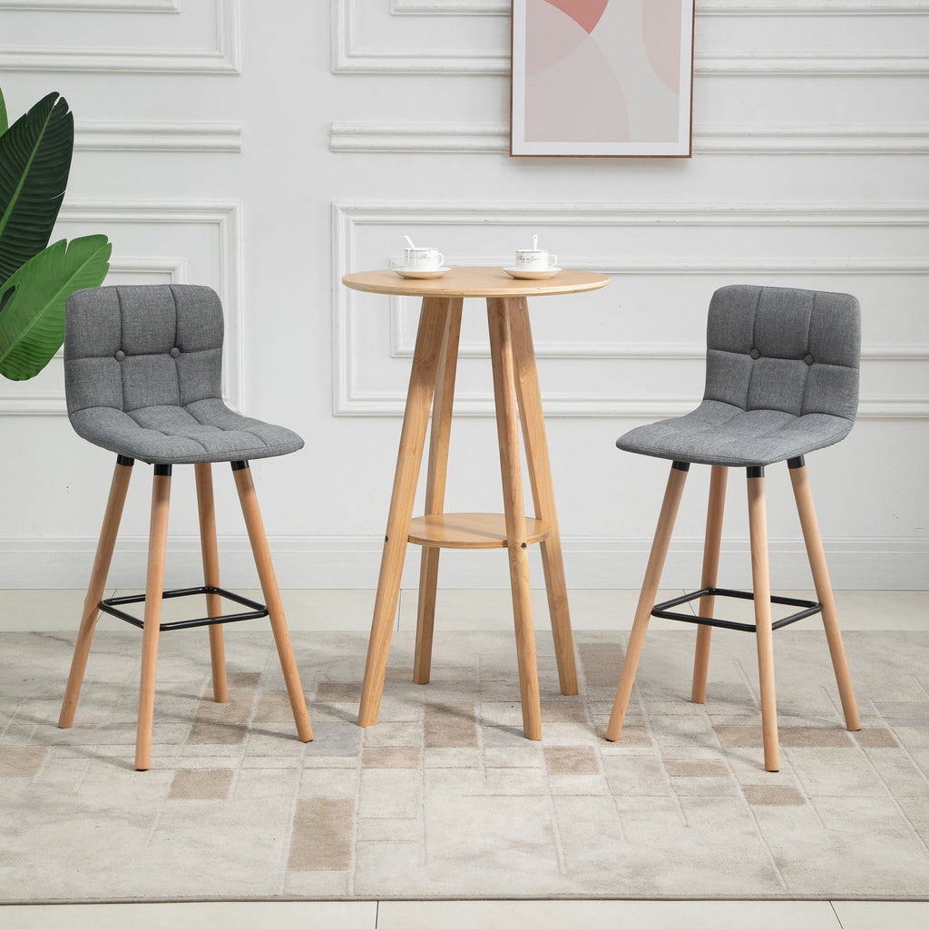 Set 2 Sgabelli 41,5x47x97,5 cm Gambe in Legno Tessuto Effetto Lino Grigio