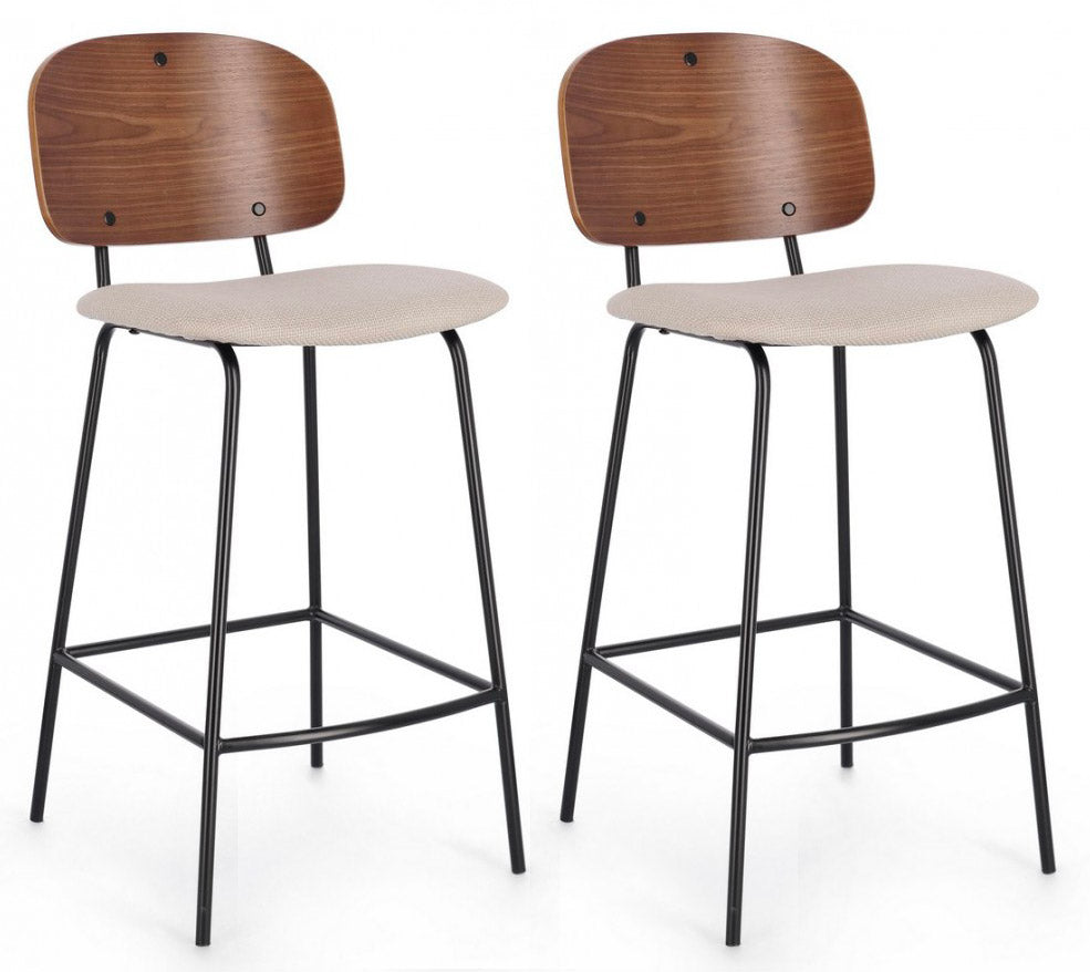 Struttura in acciaio verniciata a polvere epossidica.Schienale in compensato impiallacciato legno di pioppo.Seduta in compensato con rivestimento in 100% poliestere.Da assemblare.Set 2 Sgabelli 43,5x52,5x93,5 cm Sienna in Tessuto Beige
