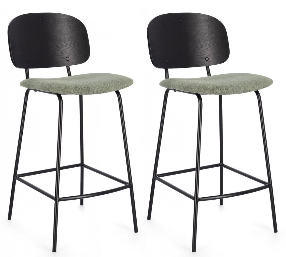 Set 2 Sgabelli 43,5x52,5x93,5 cm Sienna in Tessuto Verde