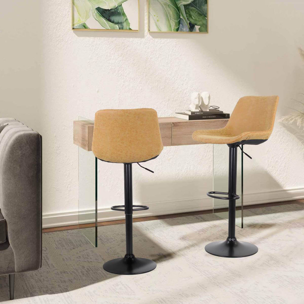 Set 2 Sgabelli 50x44x58/78 cm in Similpelle Base Nera Cammello