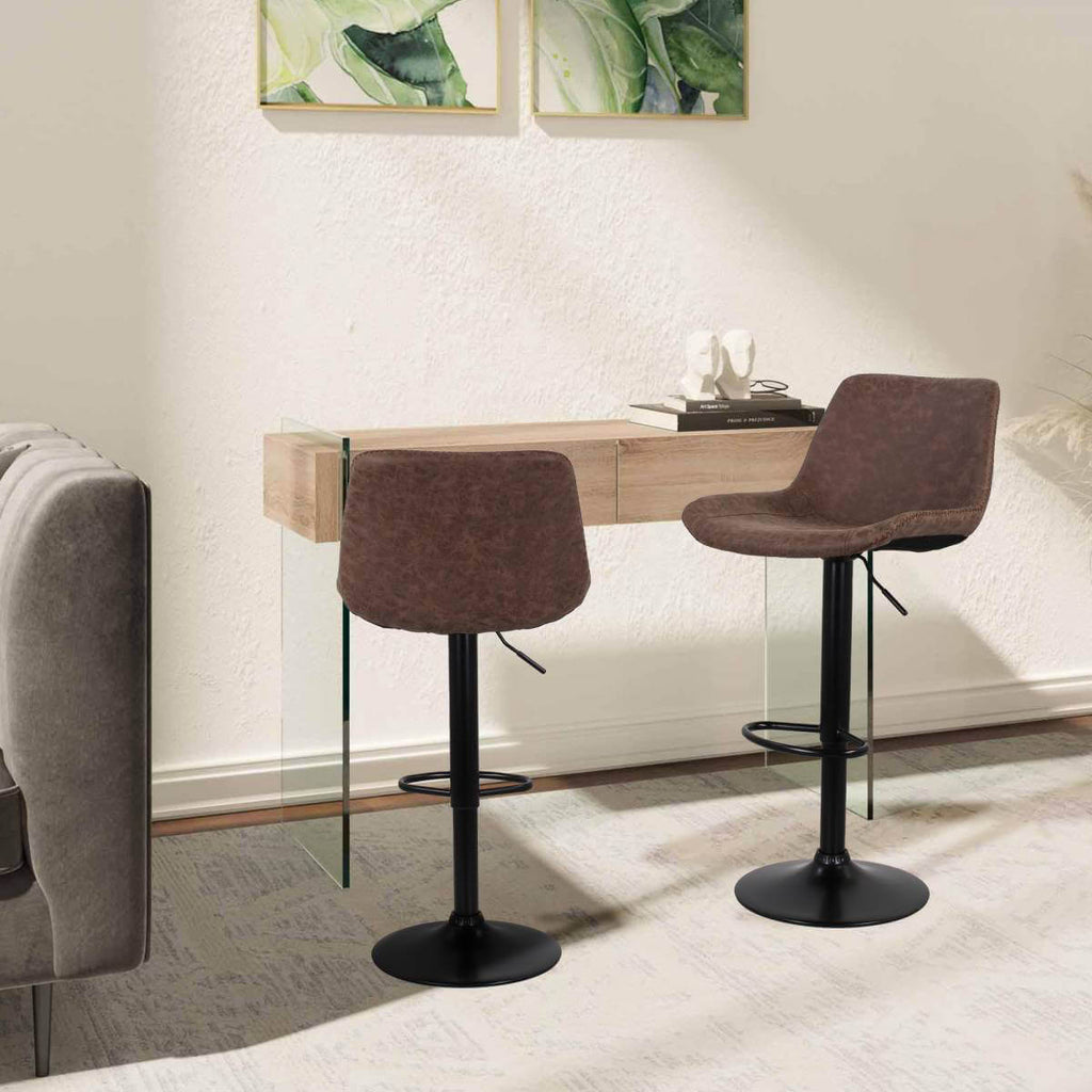 Set 2 Sgabelli 50x44x58/78 cm in Similpelle Base Nera Moka