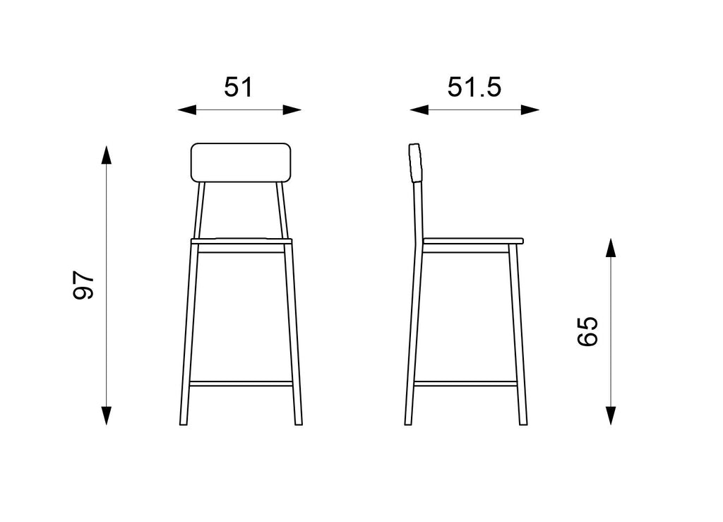 Set 2 Sgabelli 51x51,5xH97 cm in Legno e Metallo Woody Bianco