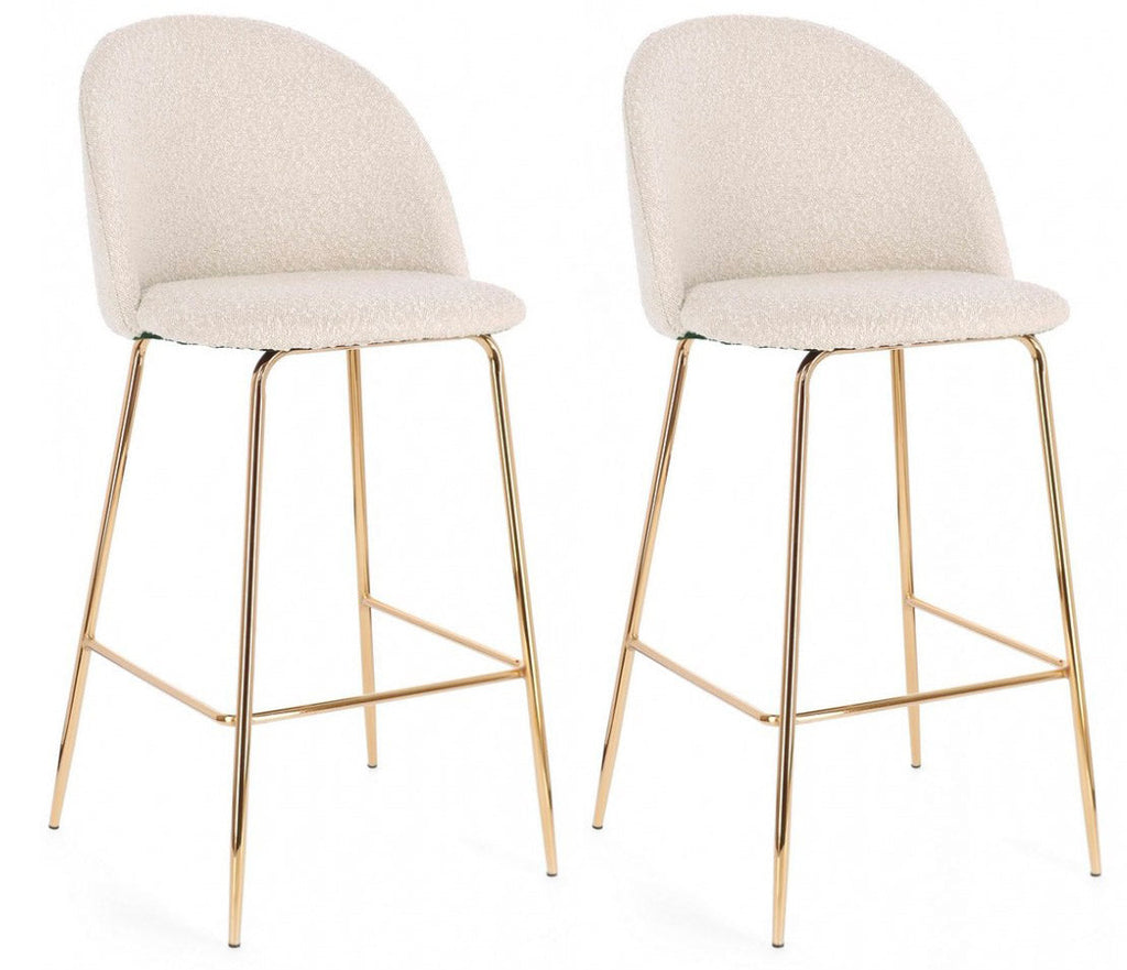 Set 2 Sgabelli 51x55x105 cm Carry in Bouclè Oro e Avorio