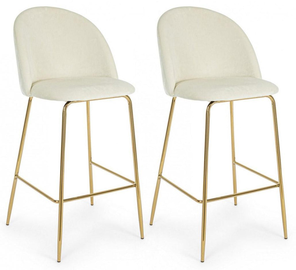 Set 2 Sgabelli 51x55x105 cm in Poliestere Effetto Velluto Bianco