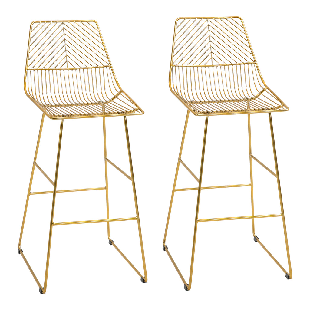 Il set di sgabelli moderni è perfetto per rinnovare l'arredamento della casa e dei locali. Il design elegante con struttura in metallo dorato si fa notare in ogni ambiente. Gli sgabelli da bar hanno un poggiapiedi integrato e schienale curvato, per offrirti un sostegno ottimale. I piedini in plastica antiscivolo offrono una maggiore stabilità. Goditi momenti di relax in compagnia quando vuoi e dove vuoi.