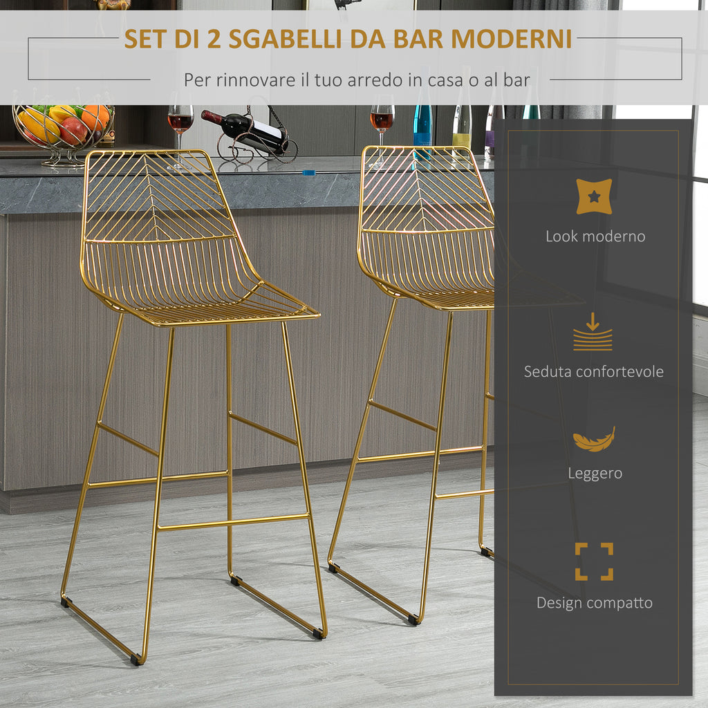 Set 2 Sgabelli Alti da Bar 53x56x110 cm in Metallo Oro
