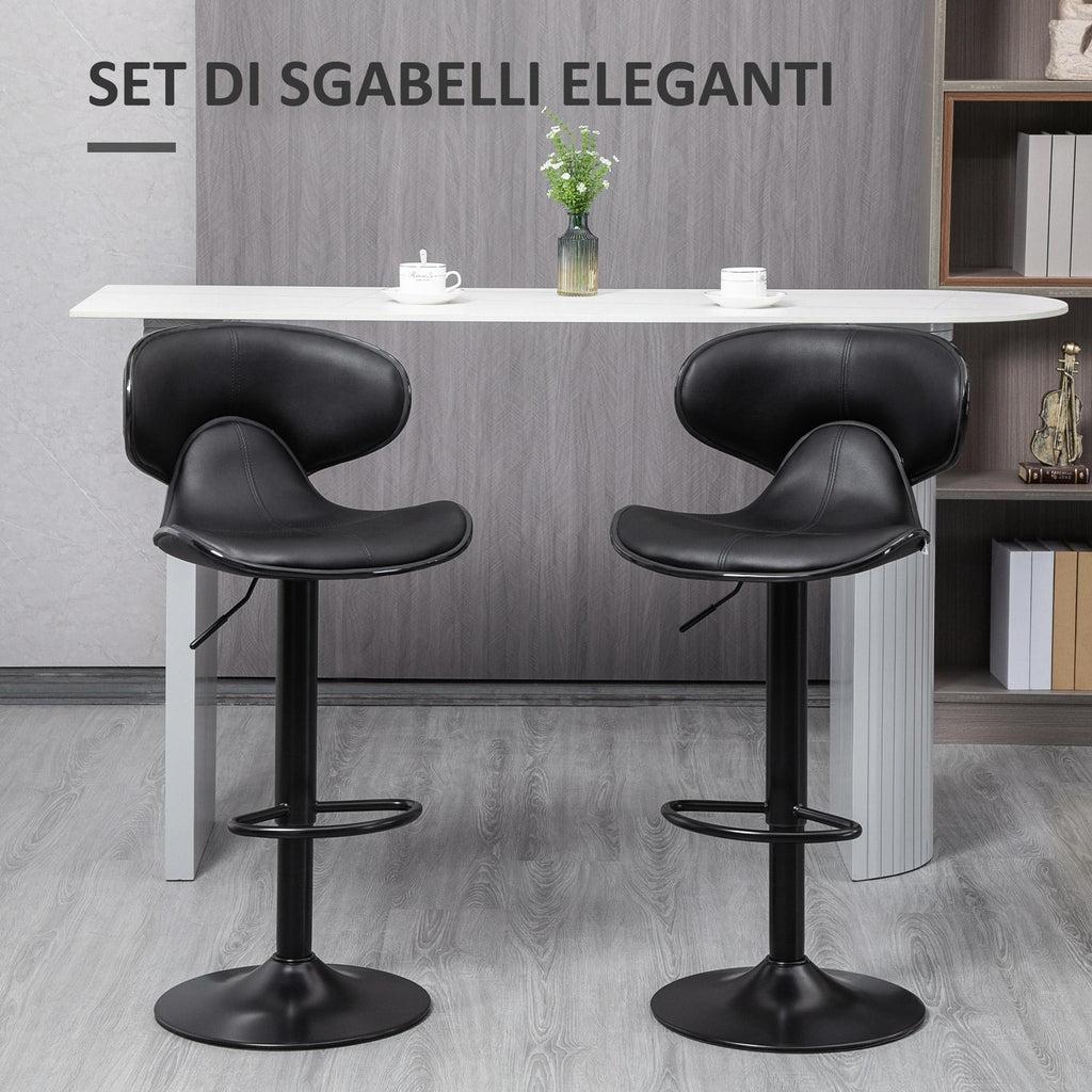 Set 2 Sgabelli Bar 45,5x46x89,5-109,5 cm con Schienale e Poggiapiedi e Similpelle Nero