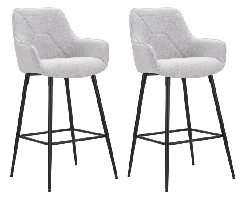 Questo set di 2 sgabelli da bar è perfetto per arredare con stile ogni ambiente. Realizzati in tessuto imbottito, offrono comfort e praticità grazie al pratico bracciolo. Le gambe e il poggiapiedi in metallo nero conferiscono una nota di eleganza, rendendo questi sgabelli un vero e proprio elemento di classe per ogni contesto dove vengono collocati.