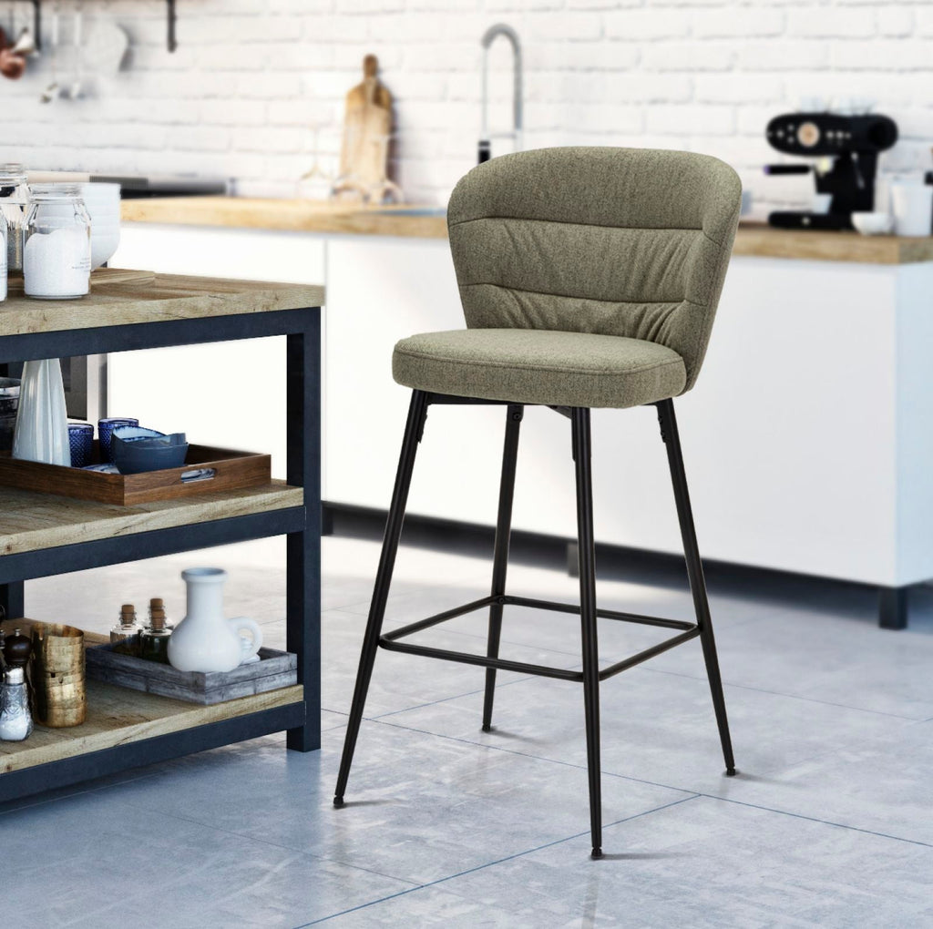 Questo set di due sgabelli da bar combina uno stile retrò ispirato al design degli anni '70 con materiali moderni. Realizzati in tessuto imbottito di alta qualità, questi sgabelli aggiungono un tocco di eleganza e comfort a qualsiasi spazio. Le gambe e i poggiapiedi in metallo nero conferiscono un tocco di classe e stabilità, completando il look sofisticato di questi sgabelli da bar. Perfetti per arredare pub, caffè o cucine, questi sgabelli bar aggiungeranno sicuramente un tocco vintage ma contemporaneo a ogni ambiente.