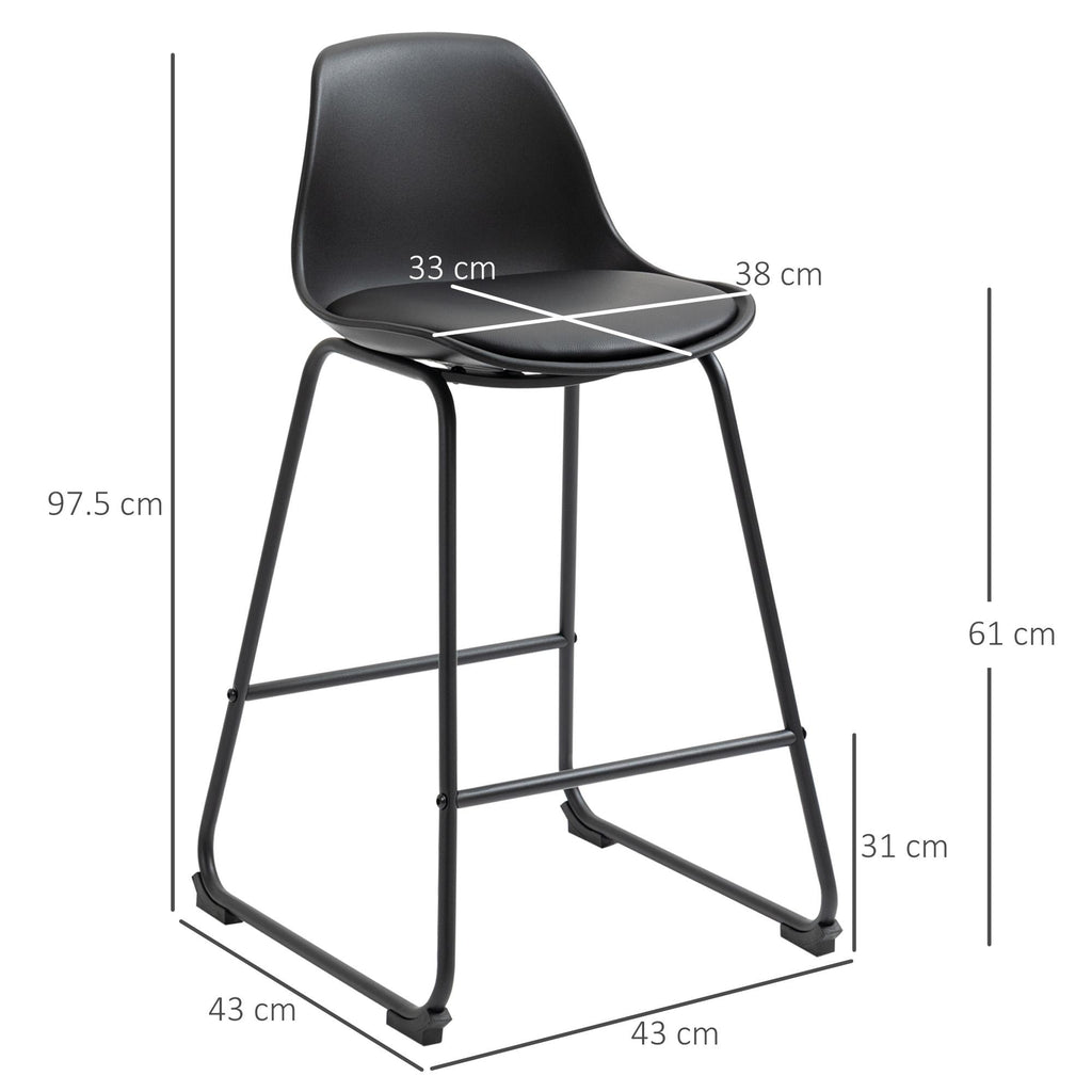 Set 2 Sgabelli con Schienale 43x43x97,5 cm Seduta Imbottita in Similpelle Nero