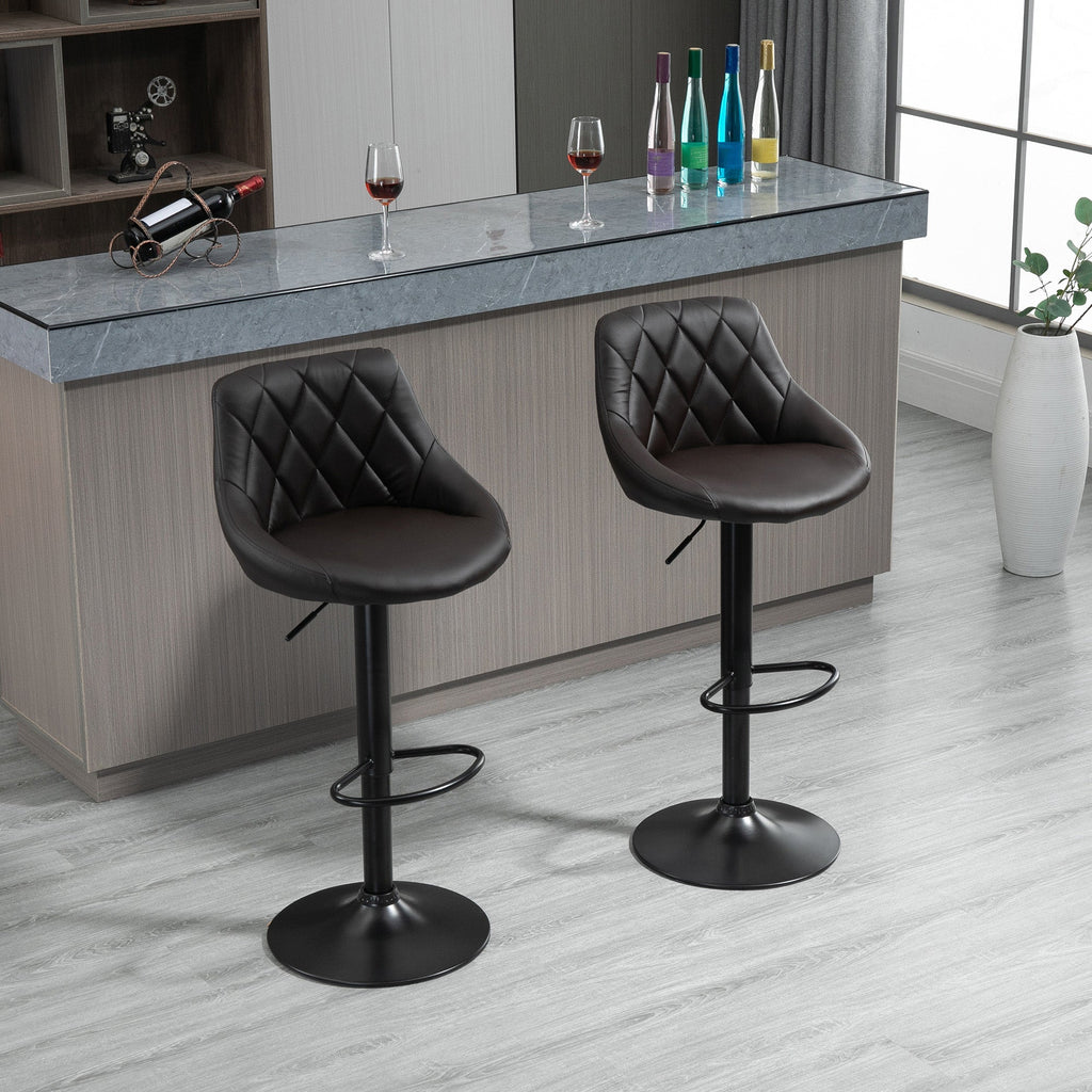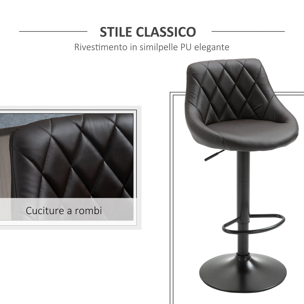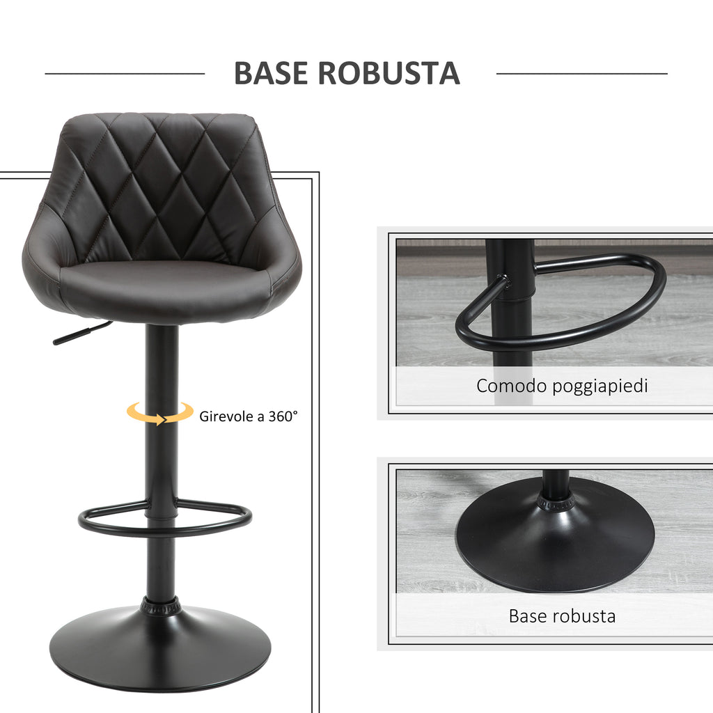 Set 2 Sgabelli da Bar 46,5x48x84,5-106,5 cm in Similpelle Marrone