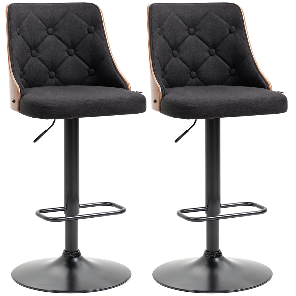 Set 2 Sgabelli da Bar 47,5x50x93,5-116 cm Seduta in Lino Poliestere Nero e Noce