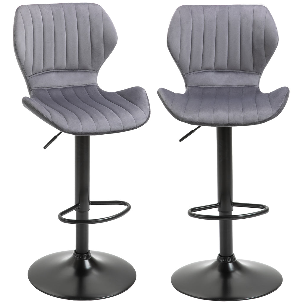 Set 2 Sgabelli da Bar 47x51,5x91,5-113,5 cm in Poliestere Vellutato Grigio