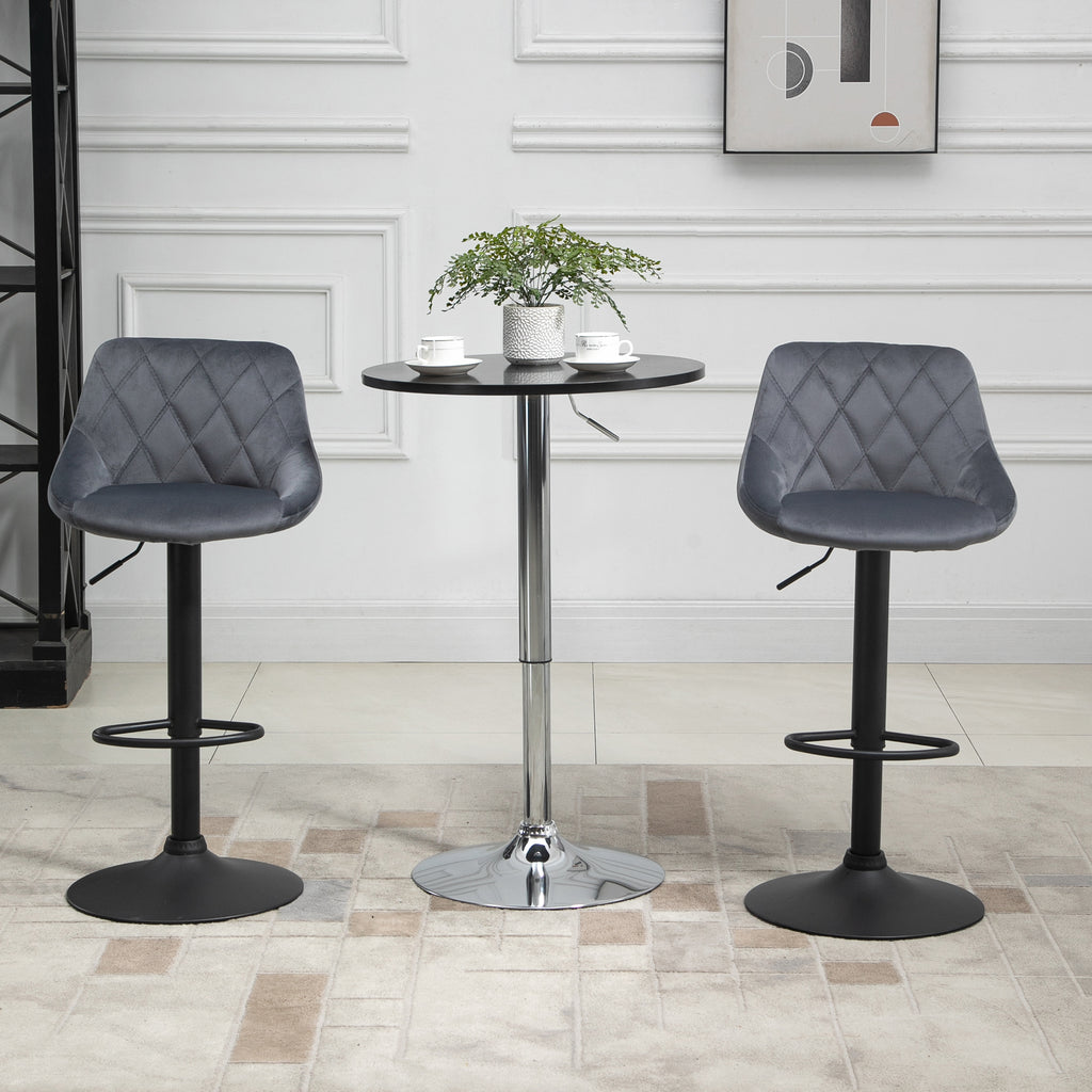 Set 2 Sgabelli da Bar 51,5x48x83-104 cm in Tessuto Effetto Velluto Grigio Scuro e Nero
