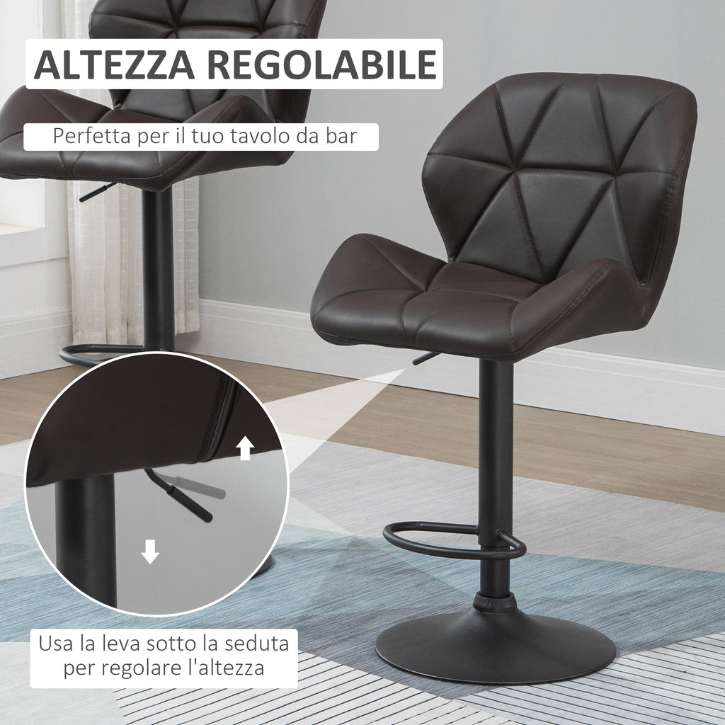 Set 2 Sgabelli da Bar 51,5x57,5x93-114,5 cm in Similpelle Marrone