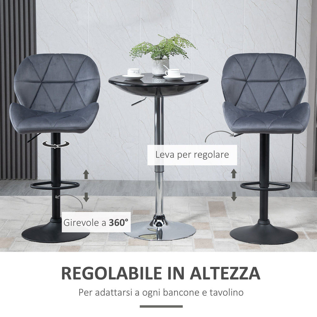 Set 2 Sgabelli da Bar 51,5x57,5x93-114,5 cm in Tessuto Effetto Velluto Grigio
