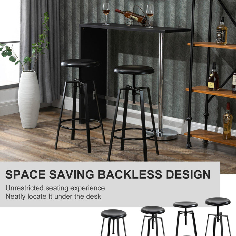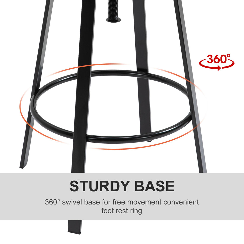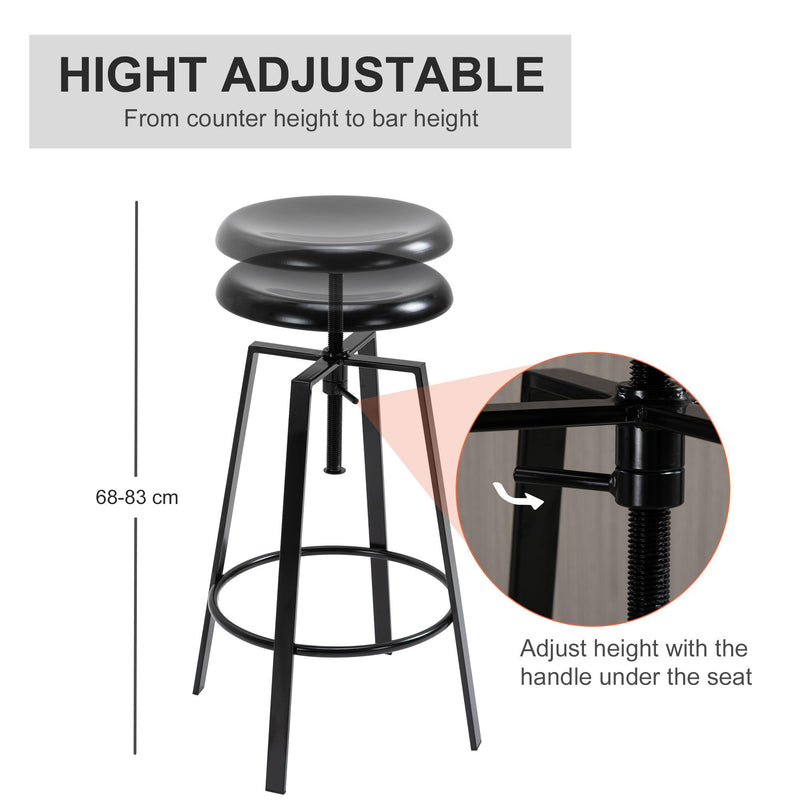 Aggiungi un tocco di originalità al bancone della tua cucina con questi sgabelli da bar. Regolabili in altezza, gli sgabelli si adattano alle diverse necessità. Lo stile industriale rende questi sgabelli alti un complemento d'arredo ideale per ogni arredamento moderno. Hanno dimensioni compatte per essere riposti in modo pratico in ogni ambiente e sono ideali a casa o al pub.