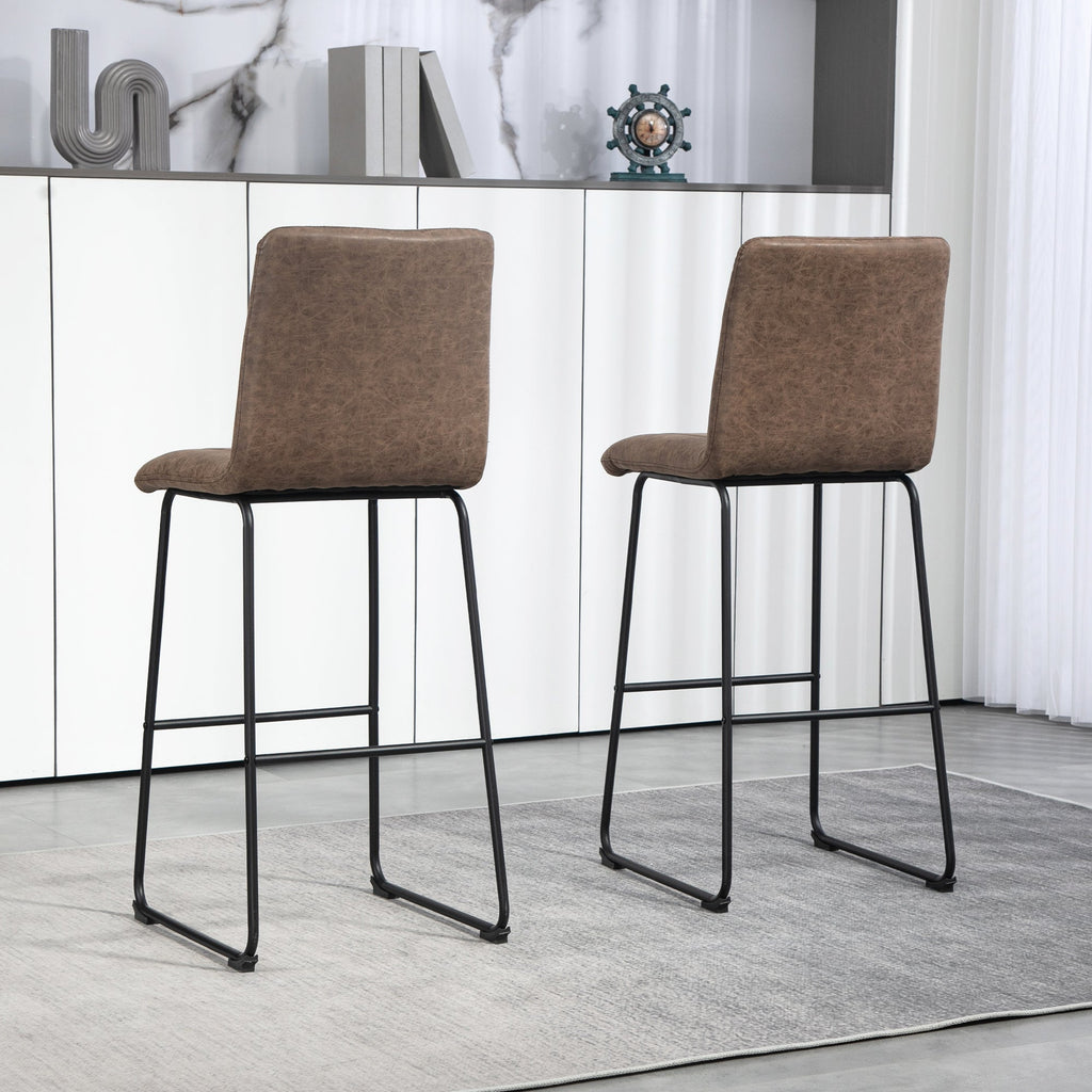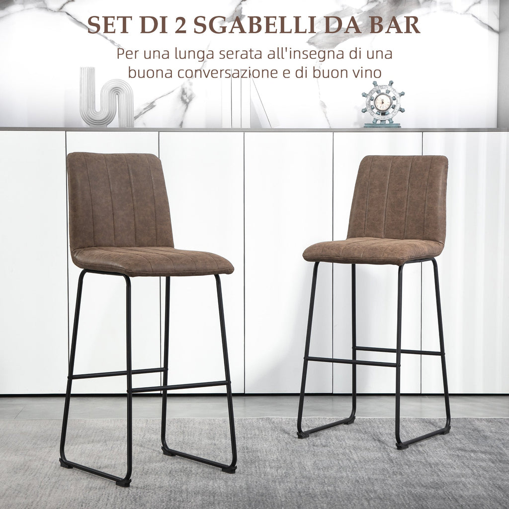 Set 2 Sgabelli da Bar con Poggiapiedi 44x50x109 cm in Pelle PU Marrone Scuro