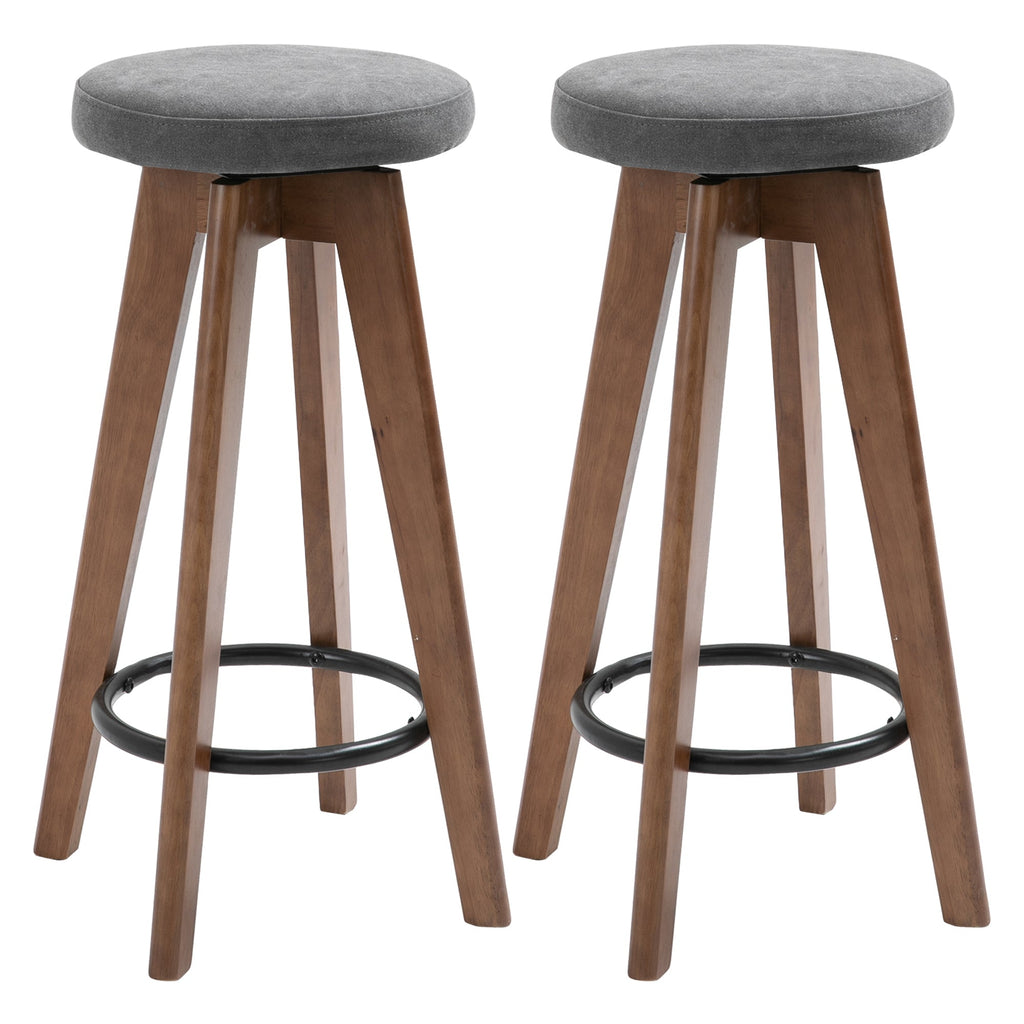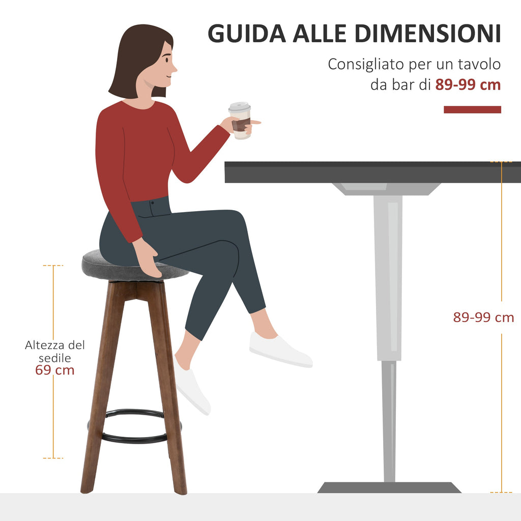 Set 2 Sgabelli da Bar Imbottiti 41x41x69 cm in Legno e Tessuto Grigio