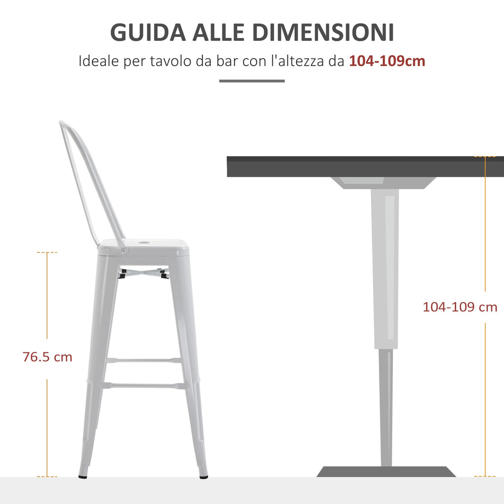 Set 2 Sgabelli da Bar Stile Industriale Schienale Rimovibile 44x49x116 cm in Metallo Bianco