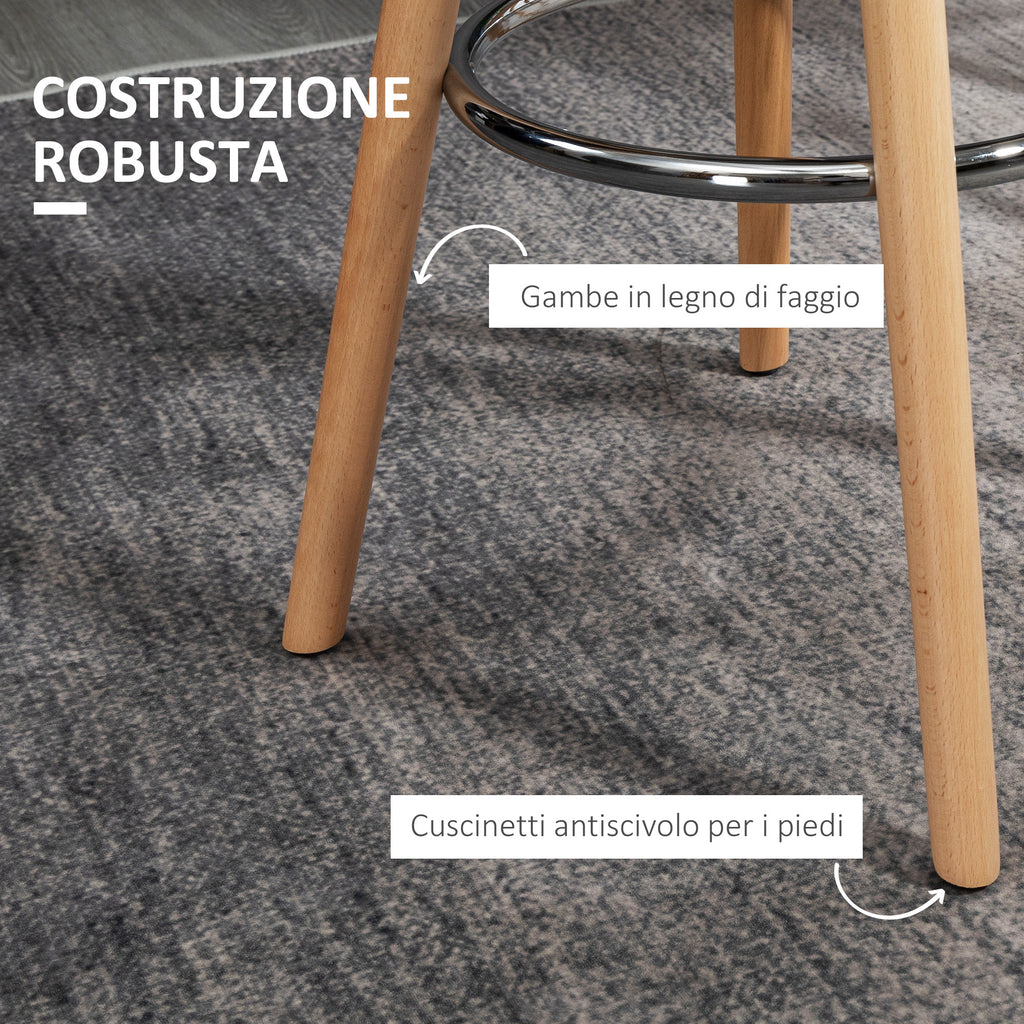 Set 2 Sgabelli da Bar Stile Nordico con Cuscino e Gambe in Legno Bianco