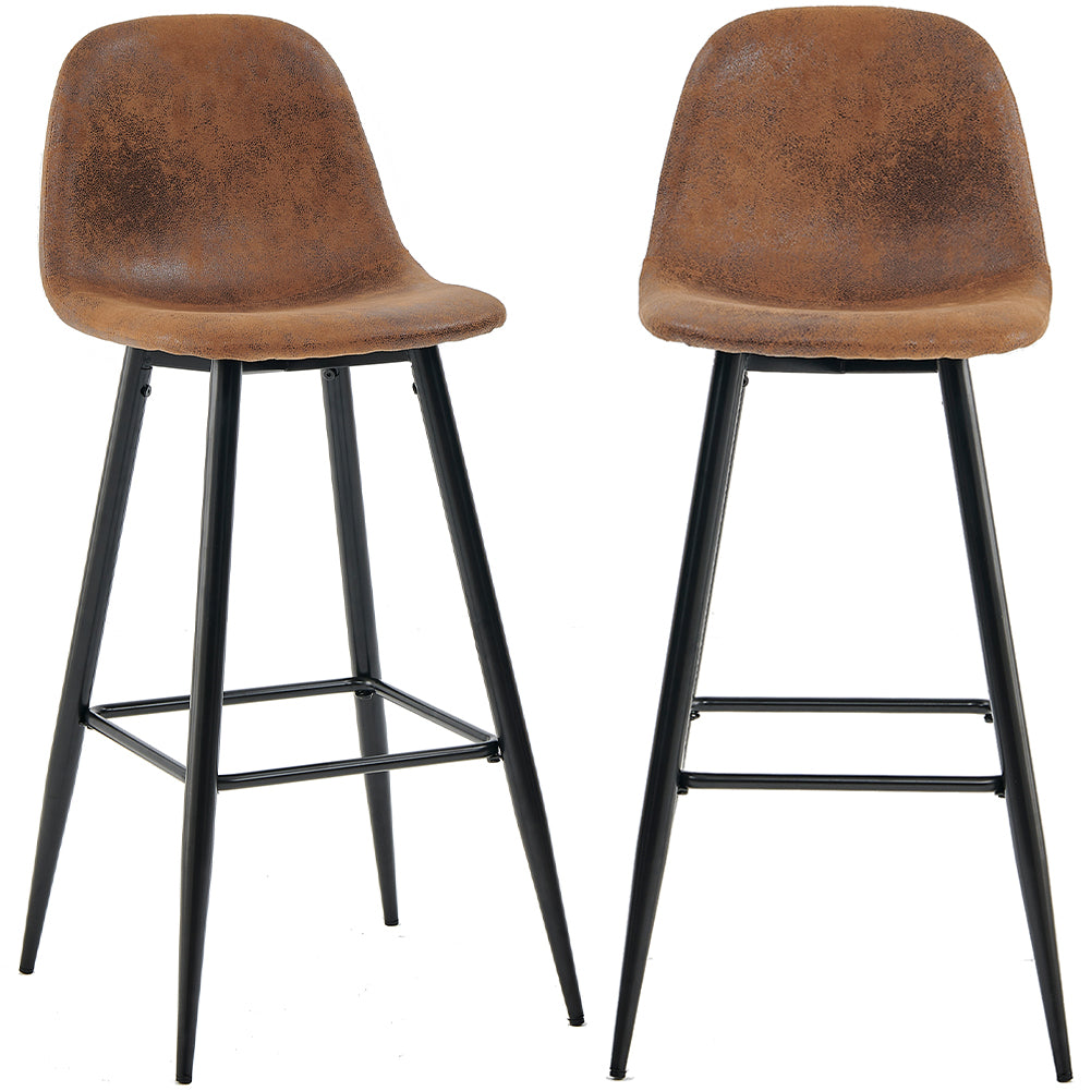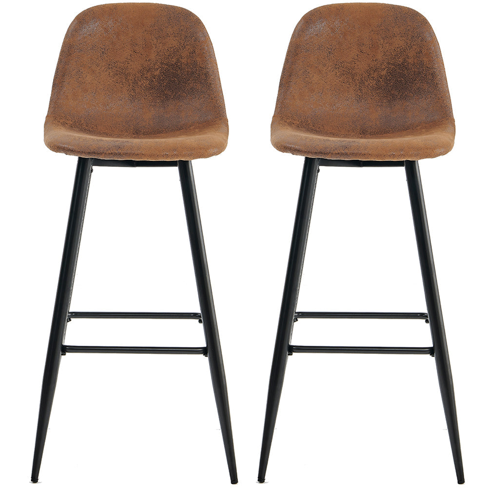 Set 2 Sgabelli da Cucina Bar Ristorante Marrone in Pelle Scamosciata e Metallo Nero