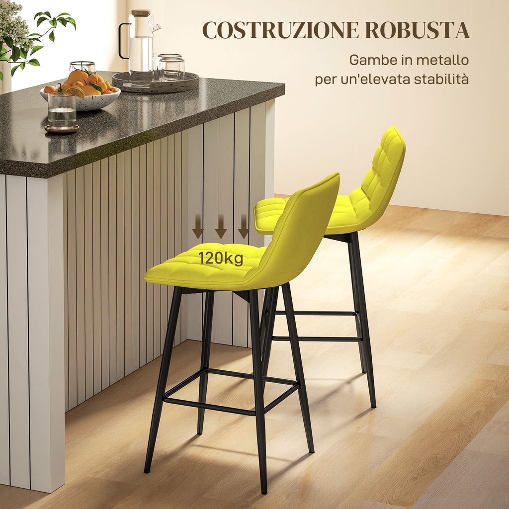 Set 2 Sgabelli da Cucina Stile Nordico 45x47x84 cm in Tessuto Effetto Velluto Giallo