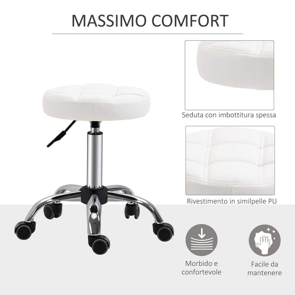 Set 2 Sgabelli Girevoli con Ruote Ø35.5x46-38 cm in Similpelle Bianco