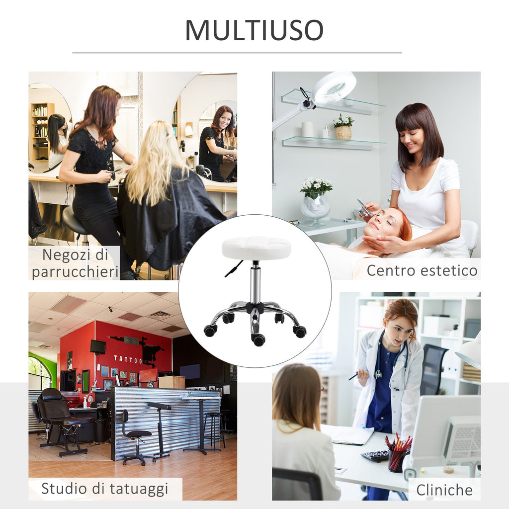 Questo sgabello da estetista ti fa stare all'altezza giusta e crea un ambiente di lavoro ideale. Il sedile imbottito offre tutto il comfort necessario e la fodera in pelle PU è facile da mantenere. Puoi regolare l'altezza dello sgabello imbottito in base a ogni esigenza e con le 5 rotelle e il sedile girevole ti muovi senza fatica. Questo elegante sgabello è perfetto per aggiungere stile e praticità a casa, nel salone di bellezza, nel negozio di parrucchiere e altro!