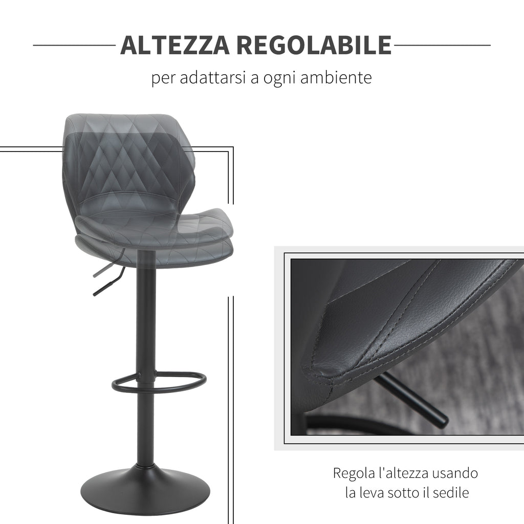 Set 2 Sgabelli Imbottite da Bar 44x50,5x90-110 cm in Similpelle Grigio