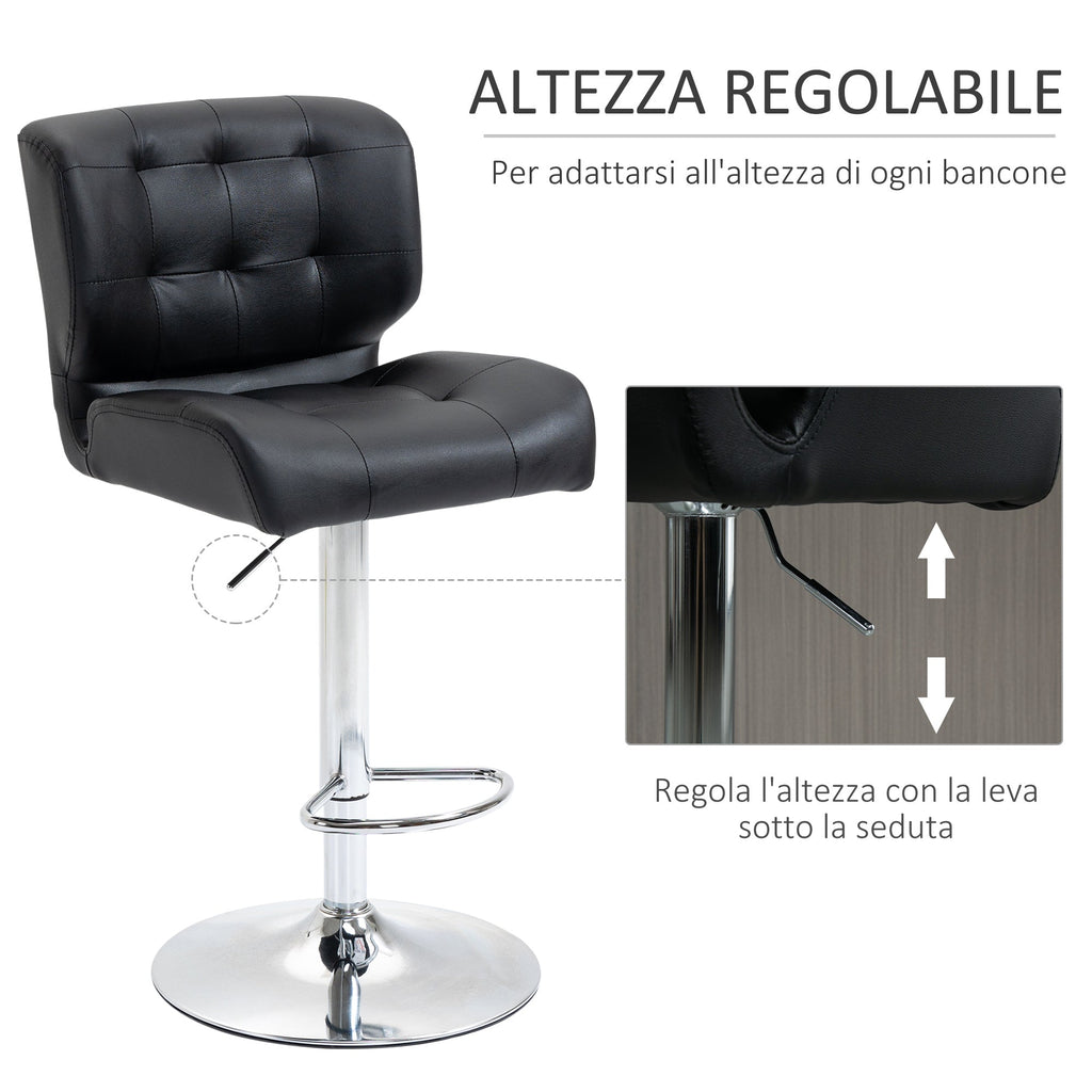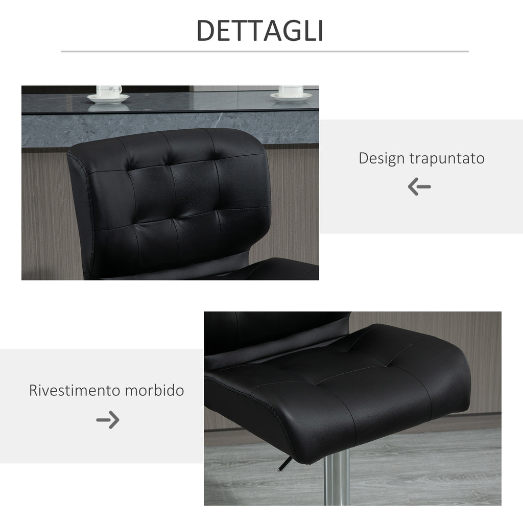 Set 2 Sgabelli Imbottiti 50x55,5x93-114 cm in Similpelle Nero