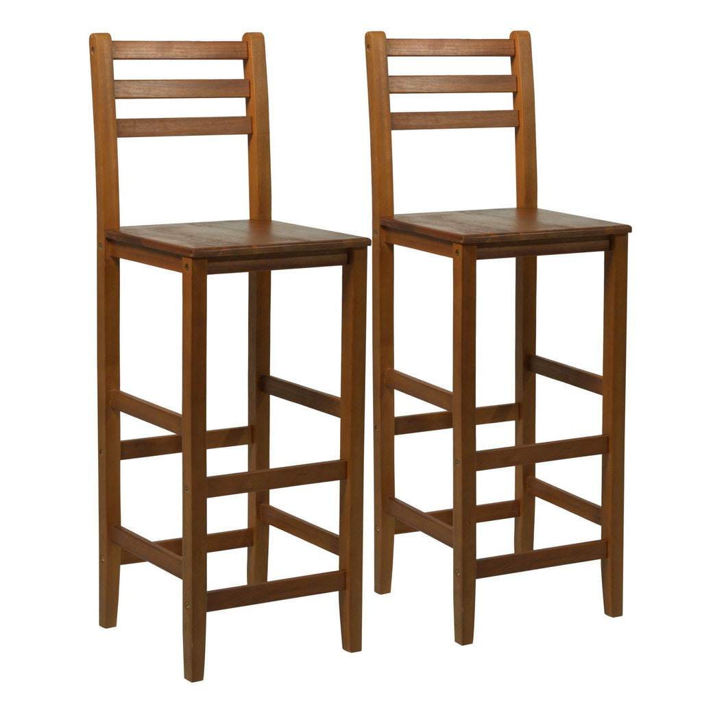 Set 2 Sgabelli in Legno di Acacia 42x36x110 cm