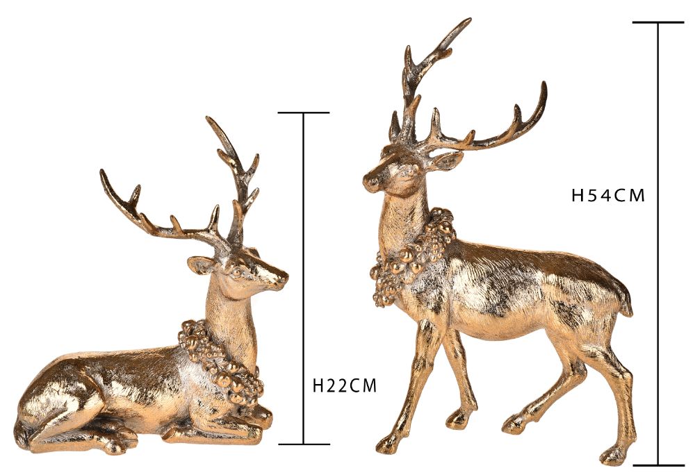 Set 2 Statuine Renne 22 cm in Resina Oro