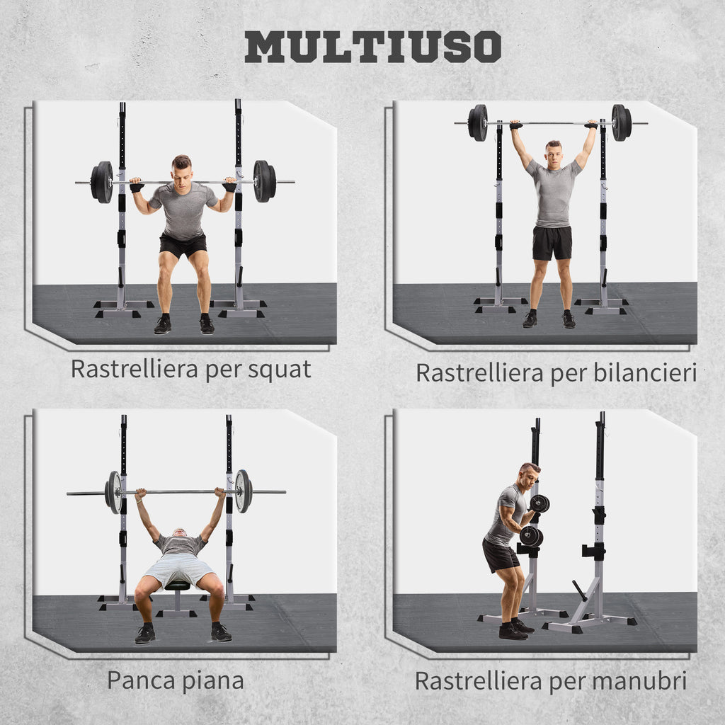 Set 2 Supporti per Bilanciere con 3 Ganci Altezza Regolabile e Portata 200kg in Acciaio