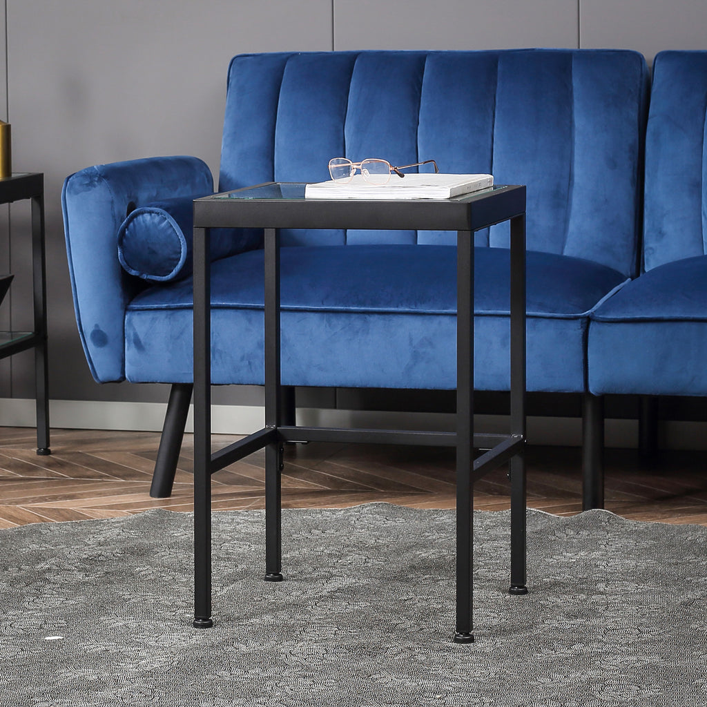 Set 2 Tavolini con Ripiano in Vetro e Struttura in Acciaio Nero