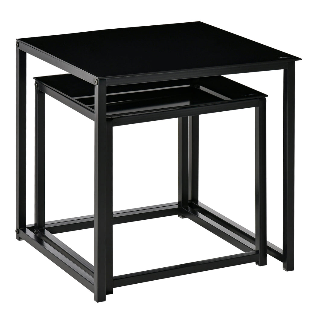 Set 2 Tavolini Moderni Piani in Vetro Temperato Nero