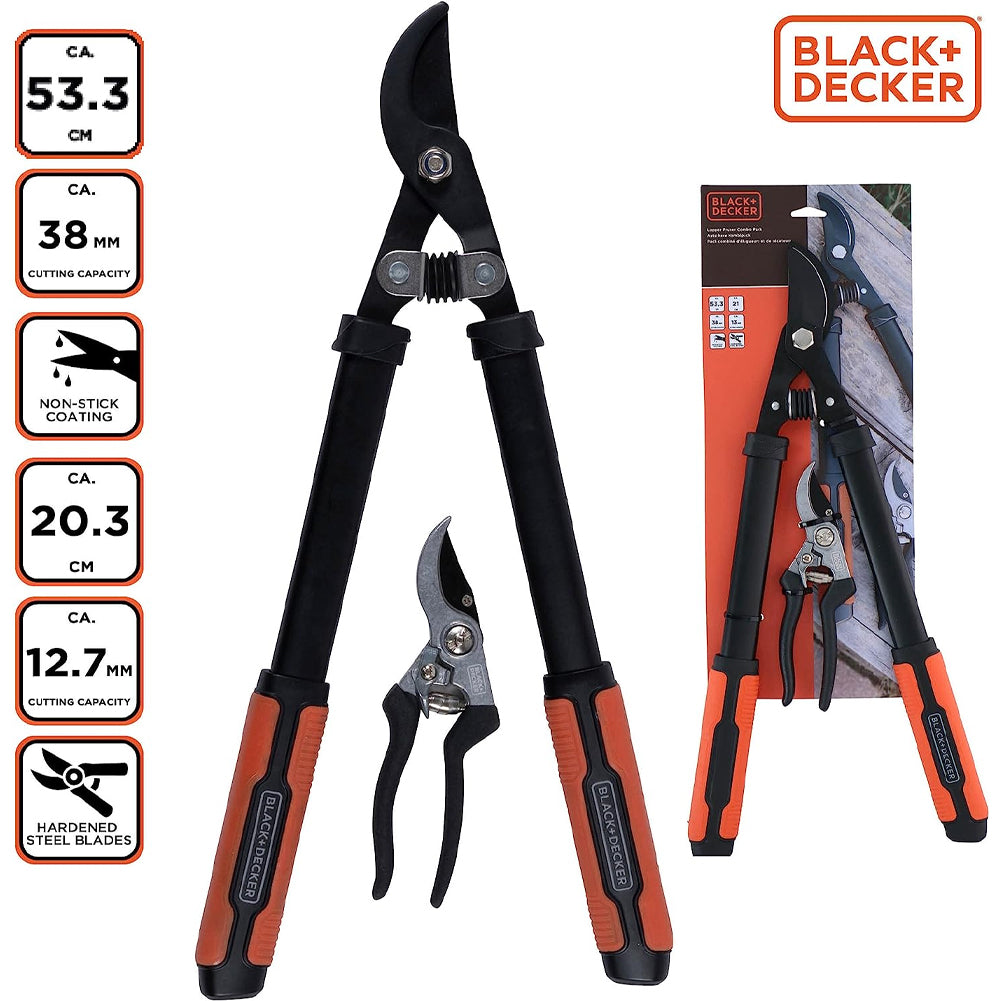 Attrezzature da giardino: questo set da taglio Black + Decker, composto da 2 attrezzi da taglio per alberi, è un must per ogni giardiniere.